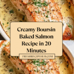 Keywords: Baked salmon, Boursin cheese, easy salmon recipe, garlic herb salmon, healthy baked fish, lemon salmon, quick dinner