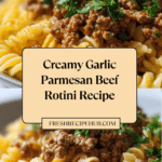 Keywords: beef rotini pasta, garlic parmesan sauce, creamy pasta recipe, ground beef pasta, easy dinner, one-pan pasta dish