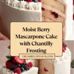 Keywords: layered cake, berry cake, mascarpone frosting, chantilly cream, homemade cake, fresh berries, simple syrup, cake recipe, dessert