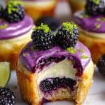 These Blackberry Lime Cheesecake Cupcakes combine a buttery graham cracker crust with a creamy lime-infused cheesecake filling, topped with luscious blackberry jam, fresh blackberries, and whipped cream. Perfectly portioned and bursting with fresh citrus and berry flavors, these delightful cupcakes are an easy-to-make dessert that impresses at any occasion.