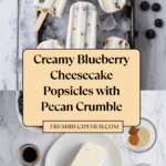 Delicious and creamy Blueberry Cheesecake Popsicles made with cottage cheese or Greek yogurt, cream cheese, fresh blueberries, and a crunchy pecan crumble crust. These no-bake frozen treats combine the tangy richness of cheesecake with the natural sweetness of blueberries, sweetened with low-calorie sweeteners like swerve or erythritol. Perfect for a refreshing and healthy dessert or snack.