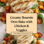 Keywords: Boursin orzo bake, creamy chicken orzo, one-pan dinner, baked orzo recipe, garlic herb cheese bake