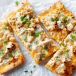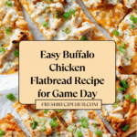 This Buffalo Chicken Flatbread recipe delivers a deliciously spicy and cheesy meal perfect for lunch or a casual dinner. Featuring crispy flatbreads topped with tender buffalo chicken, melted mozzarella, creamy blue cheese dressing, and fresh green onions, it’s a flavorful twist on a classic buffalo chicken dish with the convenience of quick oven-baking.