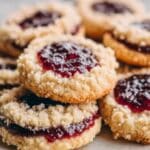 These Buttery Raspberry Crumble Cookies combine a tender, crumbly crust with a sweet and tangy raspberry jam filling. Perfectly balanced with vanilla and almond extracts, they make a delightful treat for any occasion.