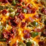 This Cauliflower Jalapeño Popper Casserole is a flavorful and comforting dish combining tender baked chicken, spicy jalapeños, crispy bacon, and creamy cheese sauce layered over fresh cauliflower florets. Perfectly baked to a golden brown, this casserole is a delicious low-carb alternative to traditional casseroles, delivering a spicy kick and a creamy, cheesy richness.