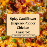 This Cauliflower Jalapeño Popper Casserole combines spicy jalapeños, tender chicken, and creamy cheeses for a comforting and flavorful dish. Perfect for those who love a little heat and a satisfying, hearty meal.