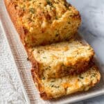 Cheddar Bay Biscuit Bread is a savory, cheesy quick bread inspired by the flavors of classic cheddar bay biscuits. This moist and flavorful bread combines shredded cheddar cheese, garlic, onion, and parsley for a deliciously aromatic loaf perfect for any meal or snack.