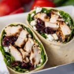 These Chicken Cheese Wraps combine tender balsamic-marinated chicken with tangy goat cheese and sweet cranberries for a flavorful and satisfying meal. Perfect for a quick lunch or light dinner, they’re easy to assemble and delicious served cold or at room temperature.