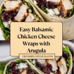 These Chicken Cheese Wraps are a delicious and easy-to-make meal featuring tender balsamic-marinated chicken breasts, fresh arugula, dried cranberries, creamy goat cheese, crunchy pecans, and a drizzle of balsamic glaze all wrapped in a soft large tortilla. Perfect for a wholesome lunch or light dinner, these wraps combine savory, sweet, and tangy flavors with a delightful texture contrast.