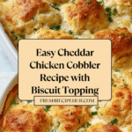 Chicken Cobbler is a comforting, hearty dish that combines tender shredded chicken with a creamy vegetable filling, all topped with cheesy Cheddar Bay biscuits. It’s an easy, satisfying meal perfect for family dinners or cozy nights in.