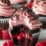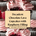 Chocolate Lava Cupcakes are a decadent treat featuring a rich, moist cake with a gooey raspberry center. Topped with a luscious raspberry buttercream and garnished with fresh raspberries and dark chocolate shavings, these cupcakes are perfect for any special occasion or when you simply want to indulge.