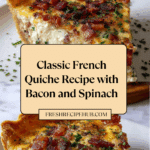 This Classic French-Style Quiche is a rich, savory pie featuring a buttery crust filled with a creamy custard of eggs, cream, and milk, combined with cheese and optional fillings like bacon, ham, sautéed spinach, and caramelized onions. Perfect for brunch, lunch, or dinner, this quiche offers a delightful blend of textures and flavors, baked to a golden perfection.