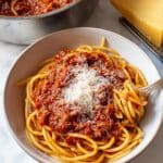 Keywords: Spaghetti Bolognese, meat sauce, Italian pasta recipe, classic Bolognese, ground beef pasta, easy dinner, weeknight meal