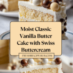 This Classic Vanilla Butter Cake is a moist and tender cake featuring the perfect balance of rich butter and sweet vanilla. Made with simple pantry staples, it is baked in three layers and finished with a smooth Swiss buttercream frosting. Ideal for celebrations or a delightful everyday treat, this cake promises a fluffy crumb and a beautifully smooth texture with every bite.