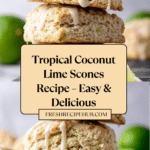 These Coconut Scones with Lime offer a delightful tropical twist on a classic favorite. Fluffy and tender with a hint of zesty lime and rich coconut, they’re perfect for morning tea or an afternoon treat.