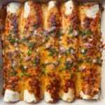 6. Serve: Allow the enchiladas to rest for 5 minutes after baking to set. Serve warm, garnished optionally with chopped cilantro, diced onion, or sliced avocado to add freshness and texture to your meal.