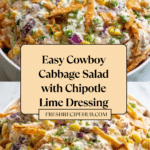 Cowboy Cabbage is a vibrant, flavorful salad that combines crunchy coleslaw mix with zesty jalapeño, black beans, and a creamy chipotle dressing. Topped with spicy Chili Cheese Fritos, it offers a perfect balance of texture and bold Southwestern flavors. This quick and easy dish is ideal for potlucks, BBQs, or a satisfying side.