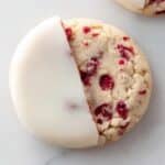 Cranberry Shortbread Cookies blend buttery richness with a sweet-tart burst from dried cranberries. These delicate cookies are elevated with a smooth white chocolate dip, making them perfect for festive occasions or an everyday treat.