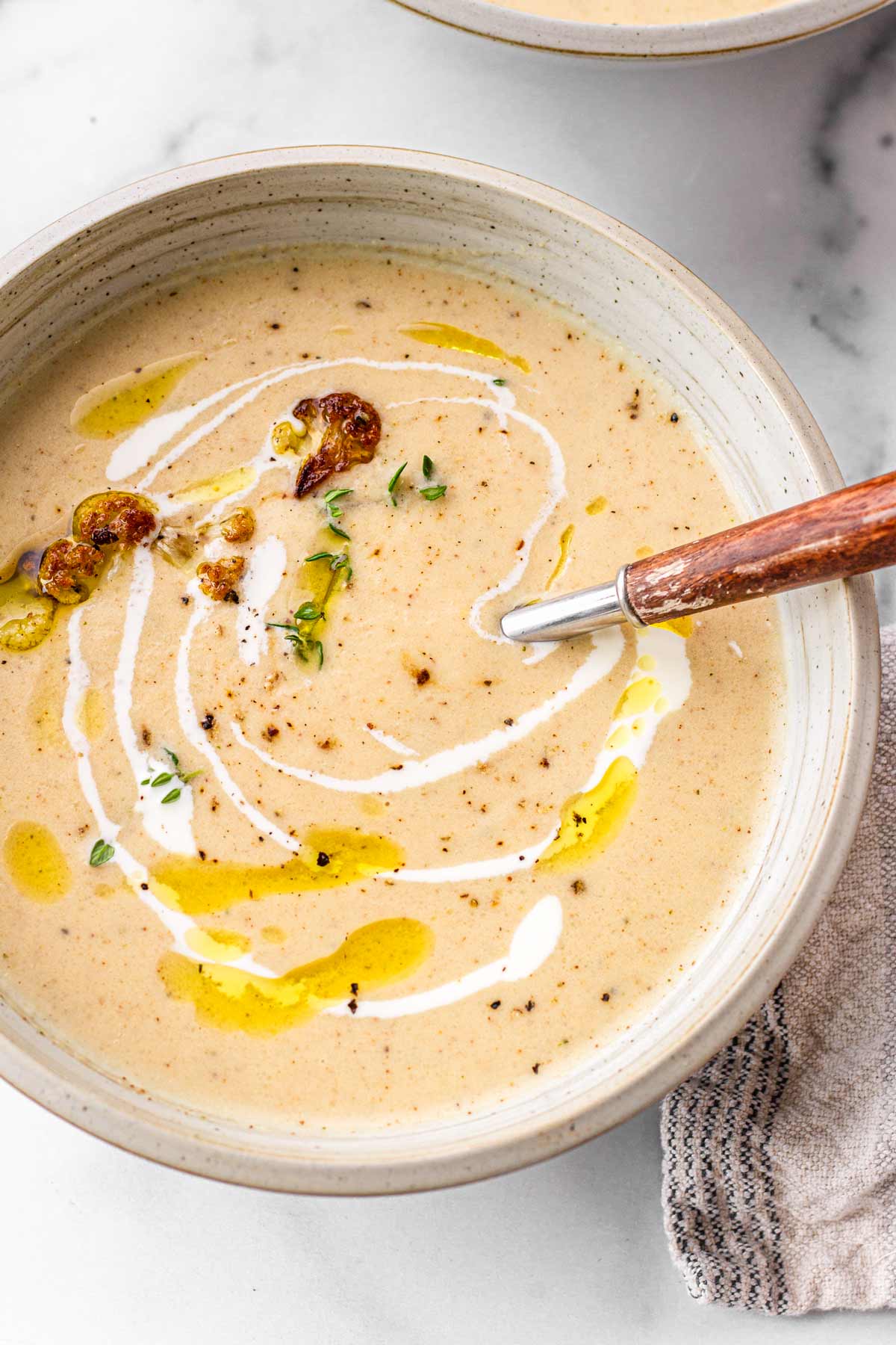How to Make Creamy Cheddar Cauliflower & Roasted Garlic Soup Recipe