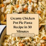 This Creamy Chicken Pot Pie Pasta recipe transforms the classic comfort dish of chicken pot pie into a hearty, creamy pasta meal. Featuring tender egg noodles tossed in a rich sauce full of chicken, mixed vegetables, and a dreamy cream base, it’s a perfect weeknight dinner that’s quick to prepare and bursting with comforting flavors.