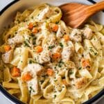 Keywords: chicken pot pie pasta, creamy chicken pasta, comfort food pasta, easy weeknight dinner, creamy pasta recipe