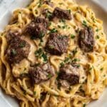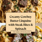 This Creamy Cowboy Butter Linguine with Steak Bites & Spinach is a deliciously comforting meal that combines tender steak pieces with a rich, buttery sauce. The addition of spinach and Parmesan makes it a satisfying dinner perfect for any night of the week.
