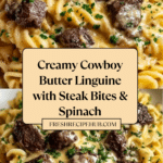 This Creamy Cowboy Butter Linguine with Steak Bites & Spinach combines tender, flavorful steak with a rich, garlicky butter sauce and fresh spinach. It’s a comforting yet elegant pasta dish that’s perfect for weeknight dinners or special occasions.