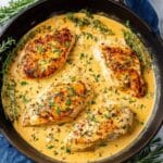 Keywords: creamy mustard chicken, chicken breast recipe, easy chicken dinner, French chicken sauce, creamy chicken skillet, wholegrain mustard sauce