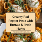 This Creamy Red Pepper Pasta with Burrata & Herbs combines roasted red peppers and rich cream to create a luscious sauce that clings beautifully to your favorite pasta. Topped with fresh burrata and basil, it’s a simple yet elegant dish perfect for impressing family and friends.