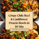 This Crispy Chile Ground Beef and Cauliflower Protein Bowl is a flavorful, high-protein meal perfect for busy weeknights. With a spicy, well-seasoned beef and vibrant veggies over fragrant cauliflower rice, it’s both satisfying and nutritious.