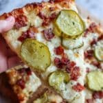 Keywords: Dill Pickle Pizza, Garlic Cream Sauce Pizza, Bacon Pizza, Unique Pizza Toppings, Cheesy Pizza, Homemade Pizza Recipe