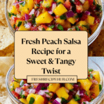 This Fresh Peach Salsa is a vibrant, sweet, and tangy condiment perfect for summer. Made with ripe peaches, fresh tomatoes, red onions, jalapenos, cilantro, and zesty lime juice, it offers a refreshing twist on traditional salsa. It pairs wonderfully with chips, grilled meats, or as a topping for tacos, providing a delightful balance of flavors and a subtle kick of heat.