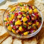 This Fresh Peach Salsa is a vibrant, sweet, and tangy condiment perfect for summer. Made with ripe peaches, fresh tomatoes, red onions, jalapenos, cilantro, and zesty lime juice, it offers a refreshing twist on traditional salsa. It pairs wonderfully with chips, grilled meats, or as a topping for tacos, providing a delightful balance of flavors and a subtle kick of heat.