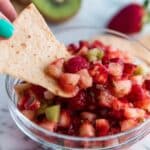 This refreshing fruit salsa pairs perfectly with warm, crispy cinnamon sugar tortilla chips for a delightful snack or light dessert. The combination of tart apples, sweet berries, and tangy kiwi creates a vibrant and flavorful topping that’s both easy to make and sure to please any crowd.