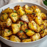 These Garlic Roast Potatoes are a simple and flavorful side dish featuring crispy, golden potatoes roasted with fragrant garlic and olive oil. Perfectly seasoned and garnished with fresh parsley, they make an ideal accompaniment to any meal.