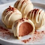 - Dip Truffles: Using a fork or dipping tool, dip each chilled truffle ball into the melted white chocolate. Allow excess chocolate to drip off before placing them back on the parchment-lined sheet.