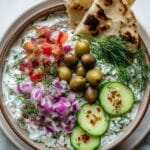 A refreshing and healthy Greek Cottage Cheese Dip that combines creamy cottage cheese with fresh vegetables, Kalamata olives, and herbs for a flavorful appetizer or snack. Perfect for serving with pita bread, crackers, or fresh veggies.