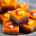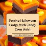 This Halloween Fudge Recipe features two layers of decadent chocolate — semi-sweet and white chocolate flavored with vanilla and a festive touch of orange food coloring. Topped with candy corn for a seasonal flair, this easy no-bake fudge is perfect for Halloween parties or treats. Ready in under an hour, it combines creamy sweetness with a fun, colorful presentation.