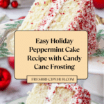 This Holiday Peppermint Cake is a festive and flavorful treat perfect for the holiday season. It features a moist white cake infused with peppermint syrup and topped with a creamy peppermint buttercream frosting, decorated with crushed candy canes for a delightful crunch and seasonal touch.