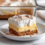 - Prepare and Chill the Graham Cracker Crust: Combine 2 cups crushed graham crackers with 1/2 cup melted butter in a 9×13-inch baking dish. Mix until crumbs are evenly coated and resemble wet sand, then press firmly into the bottom to form an even crust layer. Refrigerate for 15 minutes to set.