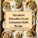 Indulgent Pistachio Cream Cinnamon Rolls offer a delightful twist on a classic breakfast treat, featuring a rich pistachio butter filling and a luscious cream cheese icing. These soft, fluffy rolls are elevated by the nutty flavor of pistachios combined with the warm spice of cinnamon, perfect for special occasions or a cozy morning indulgence.