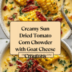 This Irresistible Sun Dried Tomato Corn Chowder is a creamy, comforting dish featuring sweet corn, tender Yukon gold potatoes, and tangy sun dried tomatoes, enriched with aromatic spices and finished with crispy goat cheese croutons for a delightful contrast in textures. Perfect as a hearty lunch or light dinner, this chowder balances smoky, sweet, and savory flavors in every spoonful.