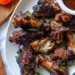 This Jamaican Jerk Chicken recipe features succulent bone-in chicken pieces marinated in a flavorful, spicy Jamaican jerk paste. You can cook it in an air fryer, conventional oven, or on the grill, offering versatile options for a deliciously smoky and spicy meal. The chicken is marinated for enhanced flavor and can be served with optional jerk BBQ sauce for added tang.