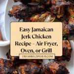 Keywords: Jamaican jerk chicken, jerk chicken recipe, air fryer jerk chicken, oven-baked jerk chicken, grilled jerk chicken, spicy chicken recipe