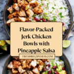 Keywords: Jerk Chicken, Pineapple Salsa, Coconut Rice, Caribbean Chicken Bowl, Healthy Dinner, Spicy Chicken, Black Beans