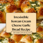 Korean Cream Cheese Garlic Bread is a deliciously soft and cheesy treat with a flavorful garlic kick. This popular street food combines creamy filling and crispy bread for a perfect snack or dessert. It’s easy to make and sure to impress at any gathering.