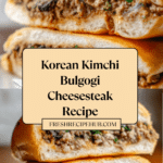 This Korean-Inspired Kimchi Bulgogi Cheesesteak blends the rich, savory flavors of marinated beef sirloin with the tangy zest of kimchi and melted provolone cheese, all nestled in a toasty hoagie roll. A fusion of classic Philly cheesesteak with bold Korean flavors, this recipe promises a deliciously unique and hearty sandwich perfect for a flavorful meal.