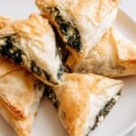 4. Fill Pastry: Spoon the creamy spinach mixture onto one half of each square. Fold the pastry over to form a triangle, sealing the edges to enclose the filling. Repeat until all squares are filled.
