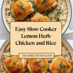 A flavorful and easy-to-make Lemon Herb Chicken and Rice recipe slow-cooked to tender perfection. This comforting dish combines juicy chicken breasts with aromatic herbs, fresh lemon juice, and fluffy rice, creating a wholesome meal ideal for any night of the week.