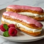 These Lemon Raspberry Eclairs combine light, airy éclairs filled with a tangy lemon cream and topped with a vibrant raspberry glaze. Perfect for a refreshing and elegant dessert, they balance citrus brightness with sweet berry flavors in a classic French pastry.